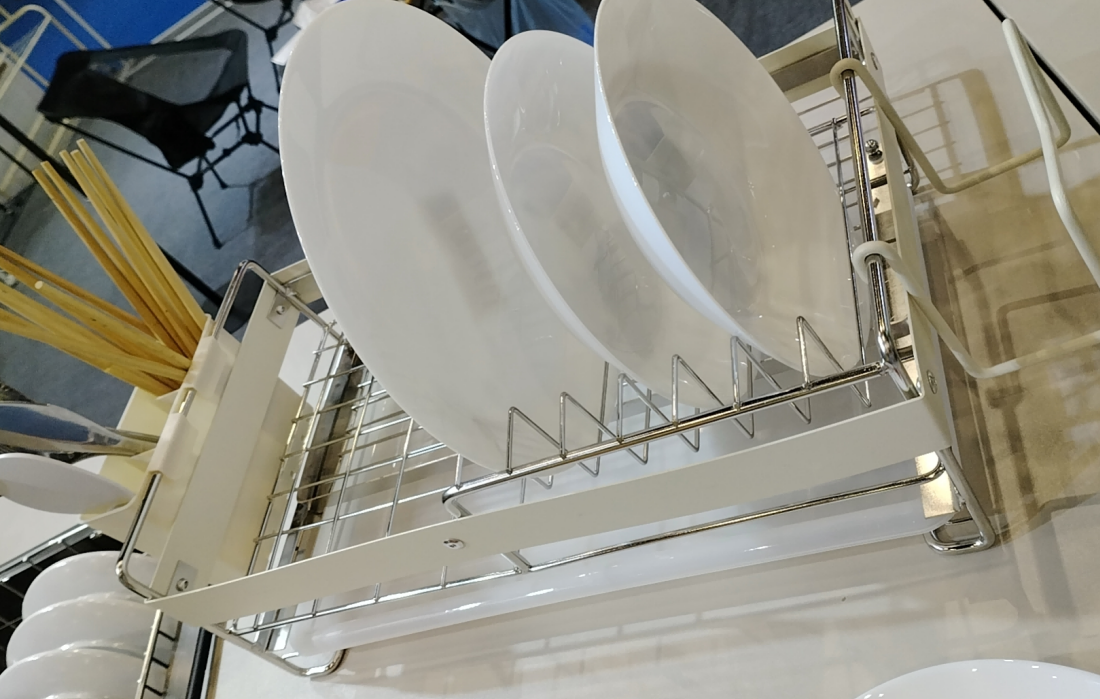 Kjøkkenoppbevaringsserien: Et uttrekkbart oppvaskstativ var det uttrekkbare oppvaskstativet i rustfritt stål, designet for optimal funksjonalitet og plasseffektivitet. Serien inkluderer også multifunksjonelle veggmonterte stativer og magnetiske knivholdere, alle laget med minimalistisk estetikk ideell for kompakte moderne kjøkken.