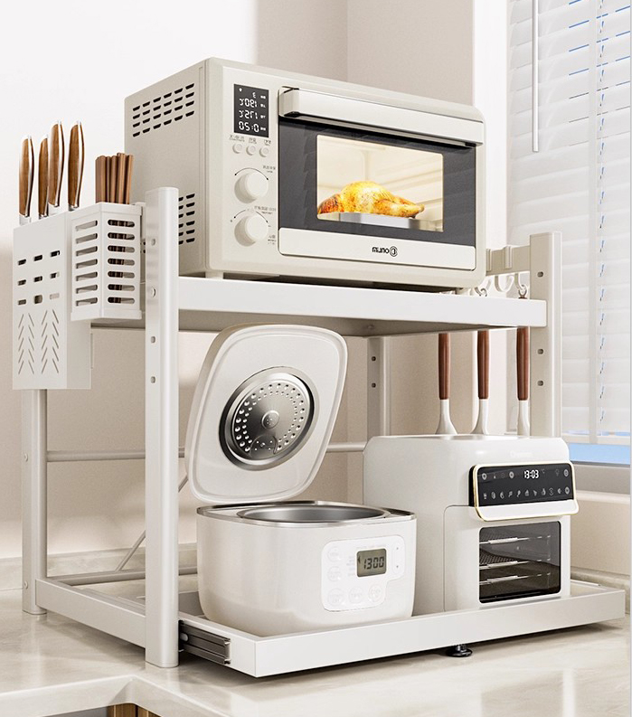 For mellomstore til store kjøkken: Større oppleggere (som uttrekkbare skapsystemer, multi-lags redskapsbrett eller veggmonterte verktøystativ) kan håndtere flere ting uten å skape rot. De er spesielt nyttige hvis du har en bred samling av verktøy eller krydder, da de forhindrer overbefolkning i standard skap.
