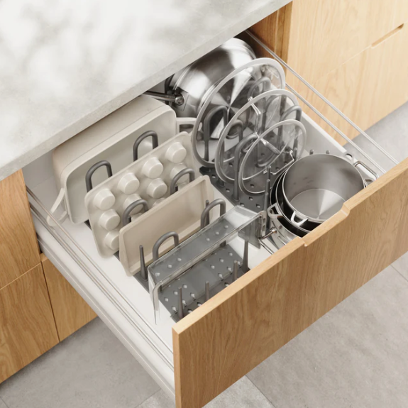 - Pantry / Kjøkken: Trådreoler er ideelle - de tillater luftsirkulasjon og gjør søl enkelt å rengjøre. Legg til hylleforinger for små gjenstander.